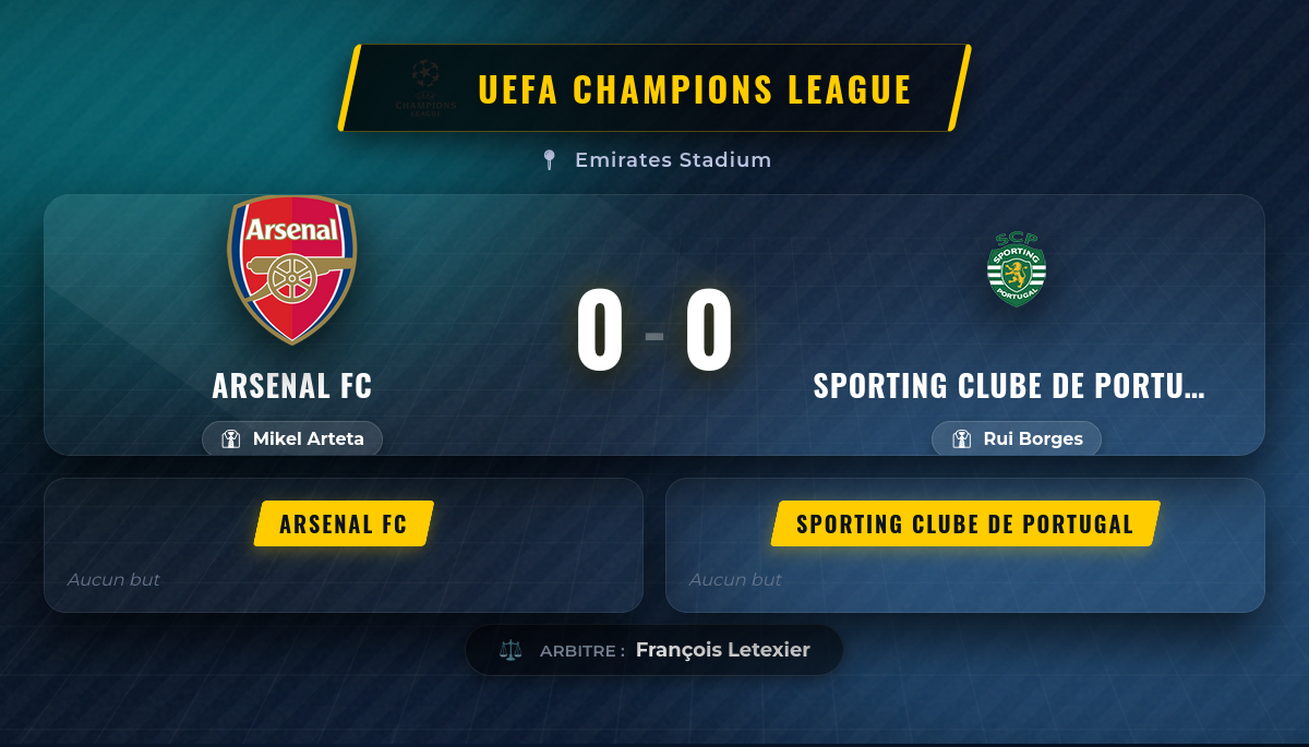 Le climax de cette confrontation a été une lutte acharnée pour l’espace. Malgré les assauts répétés des Gunners, le Sporting a su faire le dos rond, neutralisant chaque tentative de percée. Le score de 0-0 reflète parfaitement cette impasse tactique où aucune des deux équipes n’a réussi à faire basculer le destin. L’absence de but, malgré une intensité constante, a maintenu les supporters dans un suspense insoutenable jusqu’au coup de sifflet final, confirmant que chaque détail tactique comptait double dans ce duel de haute volée 🔥.