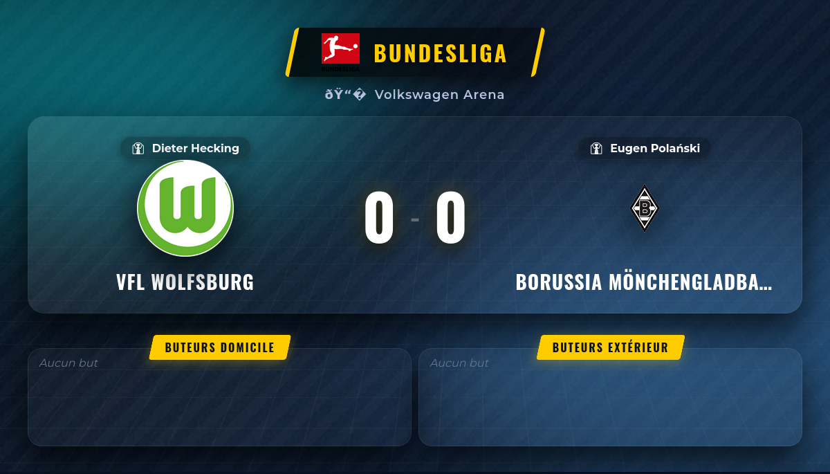 La Volkswagen Arena a accueilli ce soir une confrontation sous haute tension pour le maintien en Bundesliga. Le VfL Wolfsburg, englué à une périlleuse 17ème place, recevait un Borussia Mönchengladbach en quête de stabilité. Dans ce duel crucial pour la survie, Dieter Hecking et Eugen Polański savaient que chaque point comptait double. L’enjeu était palpable : pour Wolfsburg, il s’agissait de sortir la tête de l’eau, tandis que les visiteurs cherchaient à confirmer leur supériorité historique dans ce face-à-face. 🏟️