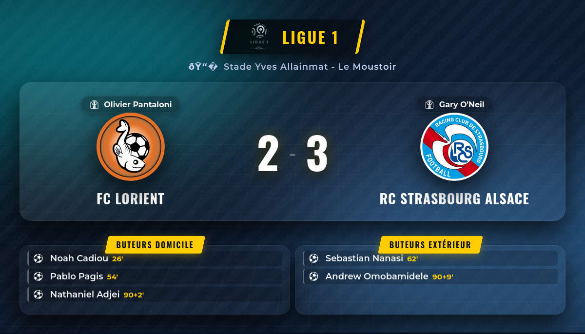 Le climax est arrivé dans le money-time. Alors que Lorient pensait tenir sa victoire, Sebastian Nanasi a réduit le score à la 62ème minute, relançant totalement les débats. Le match a basculé dans une folie pure en fin de rencontre : Nathaniel Adjei a cru offrir la victoire aux Merlus à la 90+2, mais c’était sans compter sur l’abnégation strasbourgeoise. Andrew Omobamidele a scellé une remontada historique à la 90+9, renversant le score pour offrir une victoire 3-2 aux visiteurs. 🔥