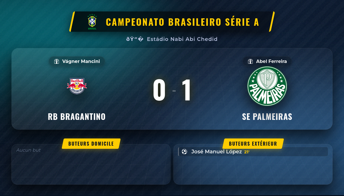 | RB Bragantino | 0 – 1 | SE Palmeiras |